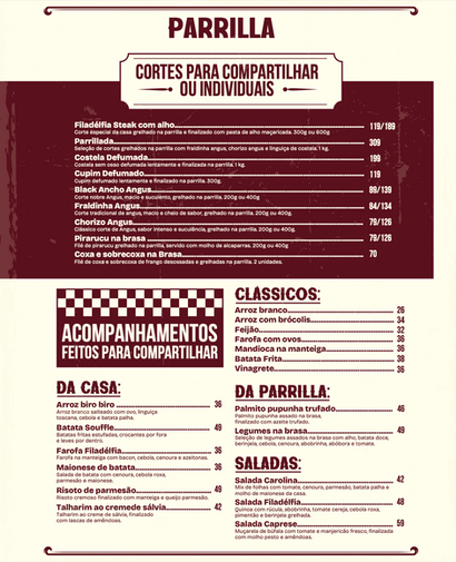 O Filadélfia Brasa foi inaugurado em 2019 para oferecer mais opções para os apreciadores de carnes selecionadas e cortes diferenciados com muita maciez, suculência e sabor. Tendo um rigoroso acompanhamento em todo o menu de comidas e bebidas.